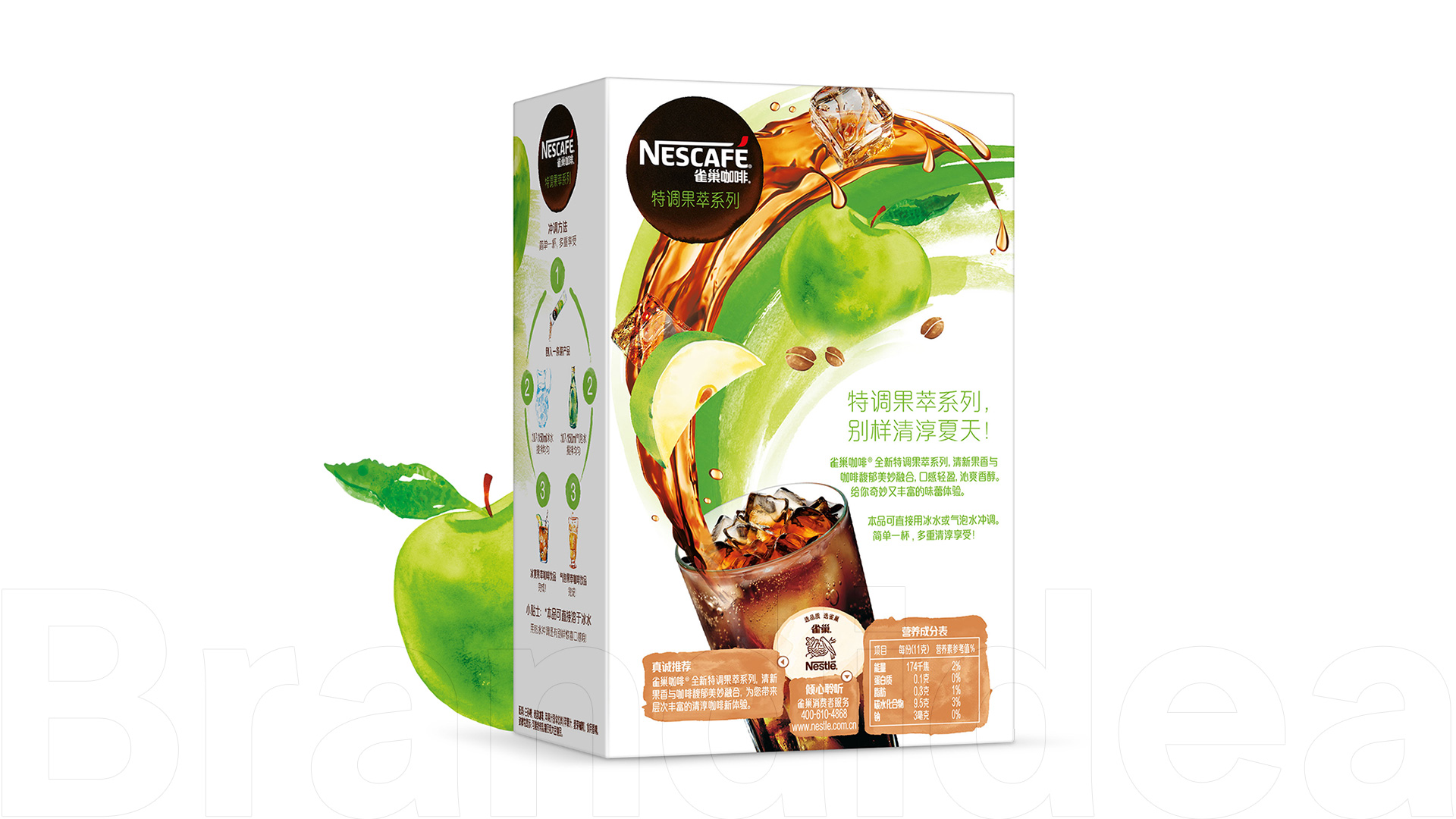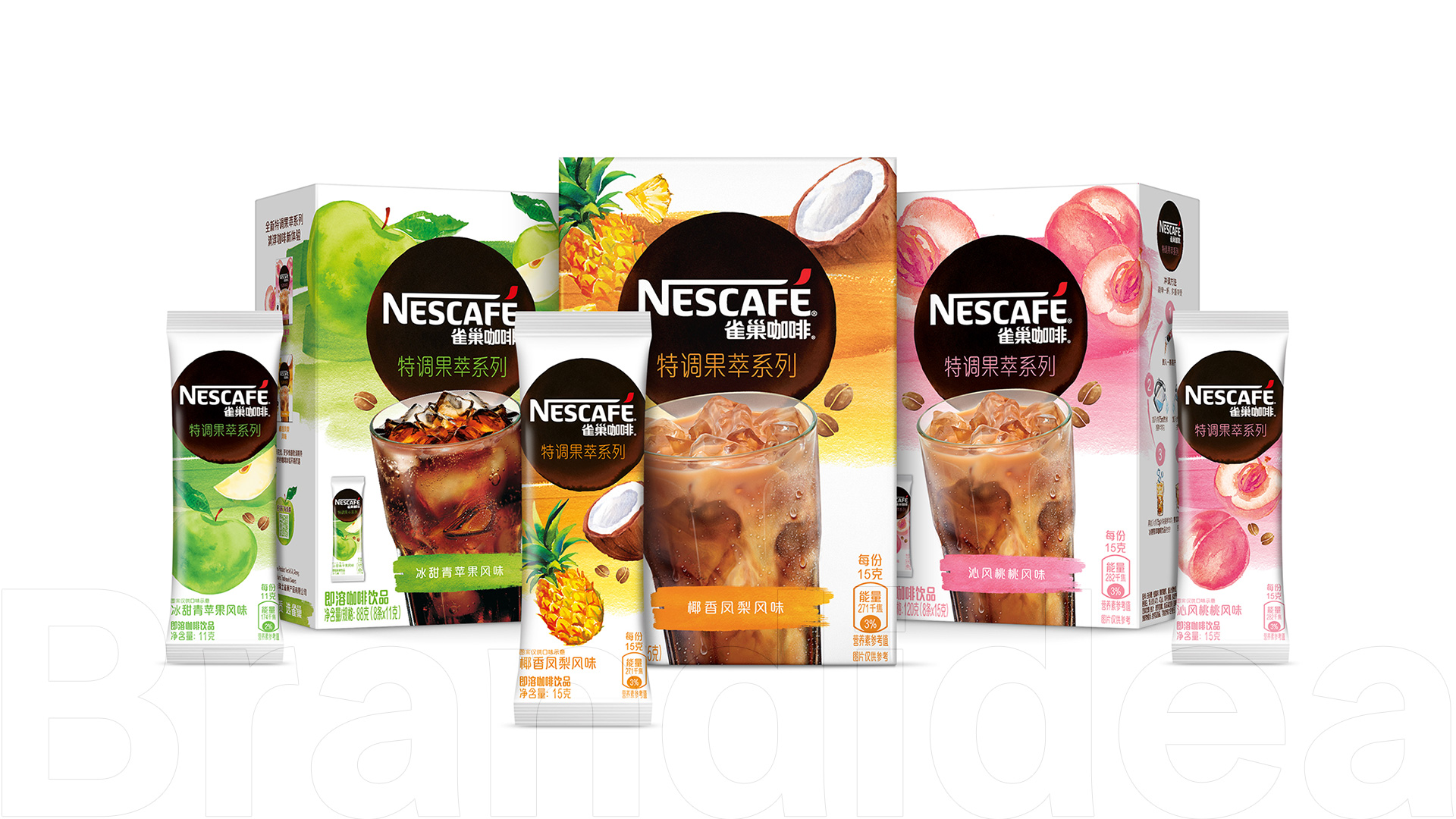 雀巢咖啡特调果萃系列的包装设计,围绕新品类属性与消费者认知展开,重点在于清晰区分传统咖啡与果味融合产品的视觉表达。设计通过整体视觉系统的梳理,在品牌一致性与产品差异化之间取得平衡,使系列产品在货架环境中具备良好的识别度与整体感。包装在视觉层级、信息传达与陈列效果上进行了系统化处理,既回应年轻化、多元化的消费趋势,也保持雀巢咖啡一贯的专业与稳定品牌形象。